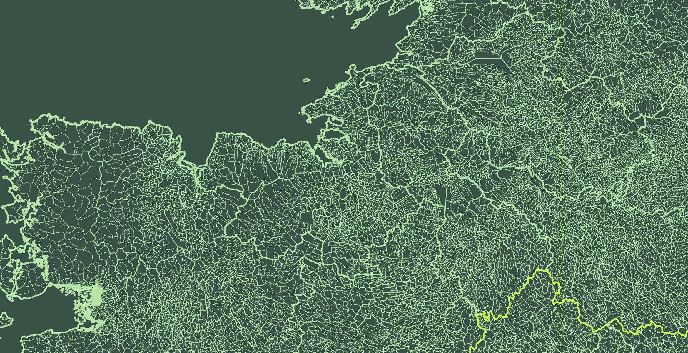 The idea of using a 7 character Eircode to generate a poster map appealed directly to Jack and Erin's interests in art, design and technology. This idea started and was fully designed and developed in our home studio.We spent weeks gathering data from Logainm, Townlands.ie and Openstreemaps and wrote code to combine, filter and enrich this data to suit the project. This includes geographic data structures, placenames in Irish and English. One of the most challenging things was creating a clean and correct relationship database of the hierachy of historical boundaries - townlands inside civil parishes, civil parishes inside baronies, baronies inside counties, counties inside provinces. All ancient yet still imaginary boundaries - human beings are nuts!The next stage was designing an image that could display these boundaries in an elegant way. We set ourselves a challenge of using three colours only, and ended up relying on line weights to do the work of subtly emphasising each boundary in the hierarchy, while still letting the insane 61,119 townlands read clearly.Something that really surprised us was that with just the boundaries, it's possible to see geographic features come through like mountains and urban areas. One of the reasons for this is super interesting. The size of townlands - which have medieval (and earlier) orgins - were based on the quality of the land, so in general, townlands in mountainous and other poor quality land were larger than those in high quality arable land. You can read more about this on wikipedia.Once a design had emerged, we rebuilt it to be composed of vector graphic SVG layers with elements carefully placed and named so that they could be dynamically edited and repositioned using code. In tandem, we built the poster engine - a Python based application that could take a townland ID and then rebuild the poster to a set of rules defined in a YAML spec file, and to a colour and line weight style sheet in another YAML file. It then composites the various layers and rasterises the final vector image to high resolution bitmaps for print.The poster engine is the most expensive part energy-consumption wise, so we're happy to share that it runs in our home on a solar-powered (weather permitting of course) Linux PC. The rest of the technology is cloud-based, but EU based where possible.Let us know if you have any questions or thoughts using the email link below.Thanks!Jack & Erin