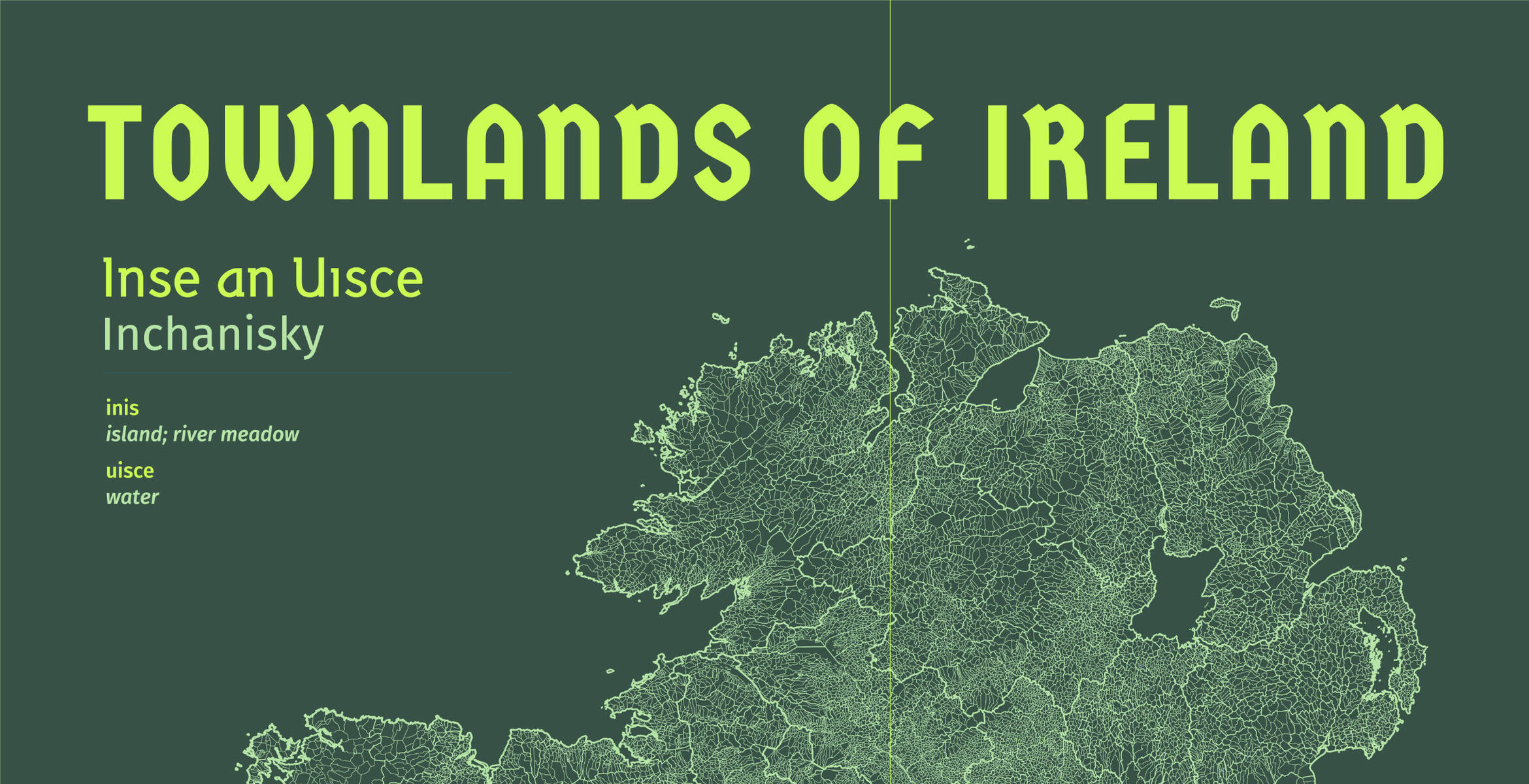 The first output from our Townlands of Ireland project is a first-of-a-kind poster design that presents these land boundaries in a unique and personalised way.